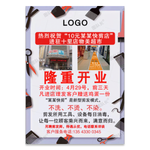 美发理发快剪店开业海报模板